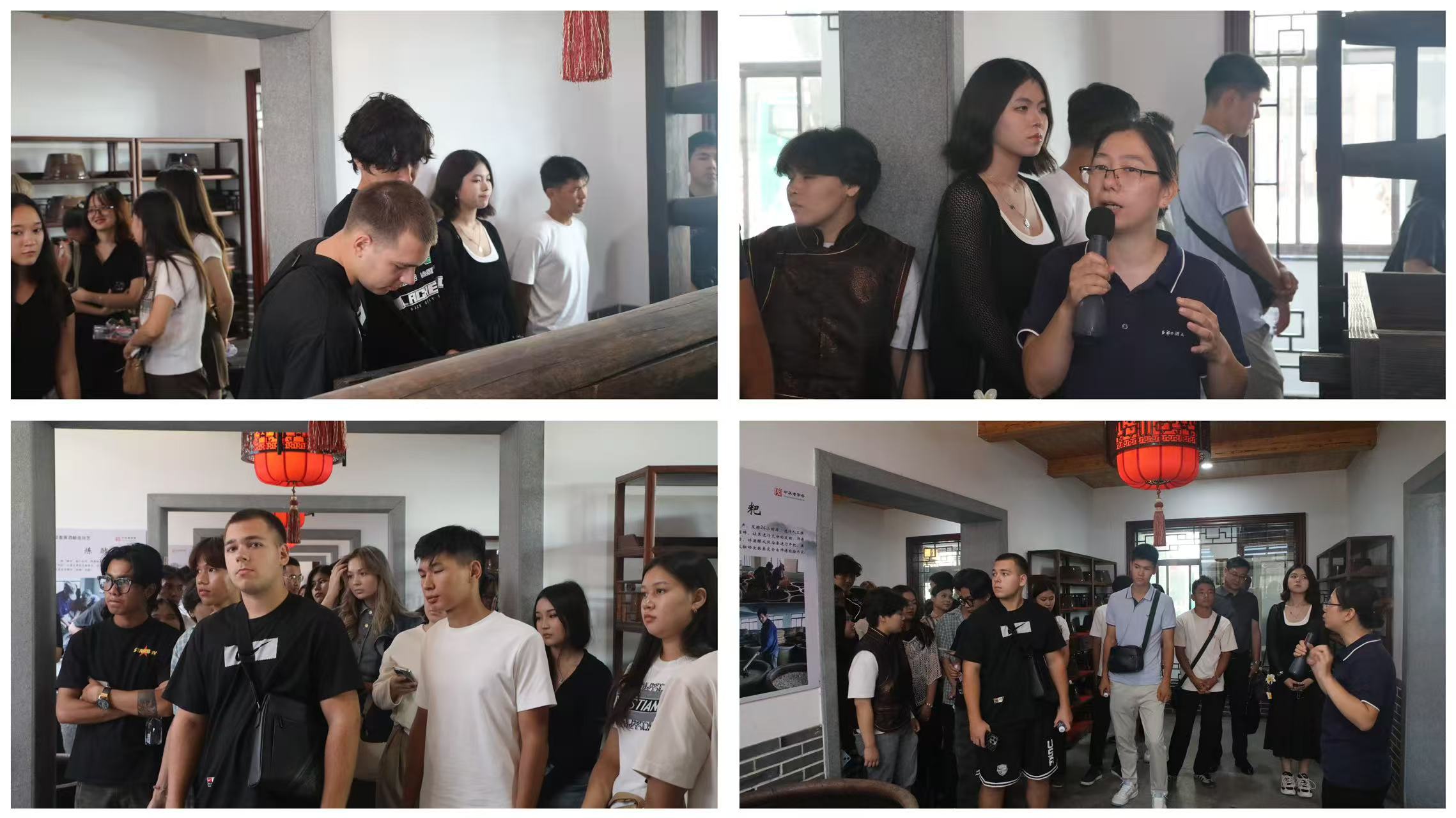走進企業展覽館,另一番景象讓留學生們眼前一亮。玻璃展柜里,封存完好的舊時老酒散發著歲月的醇香,旁邊泛黃的賬本記錄著往昔的經營故事;活字印刷模具、老式算盤等 “老工具” 整齊擺放,勾起了大家對傳統商業文化的好奇,紛紛駐足觀察,不時互相交流心得。